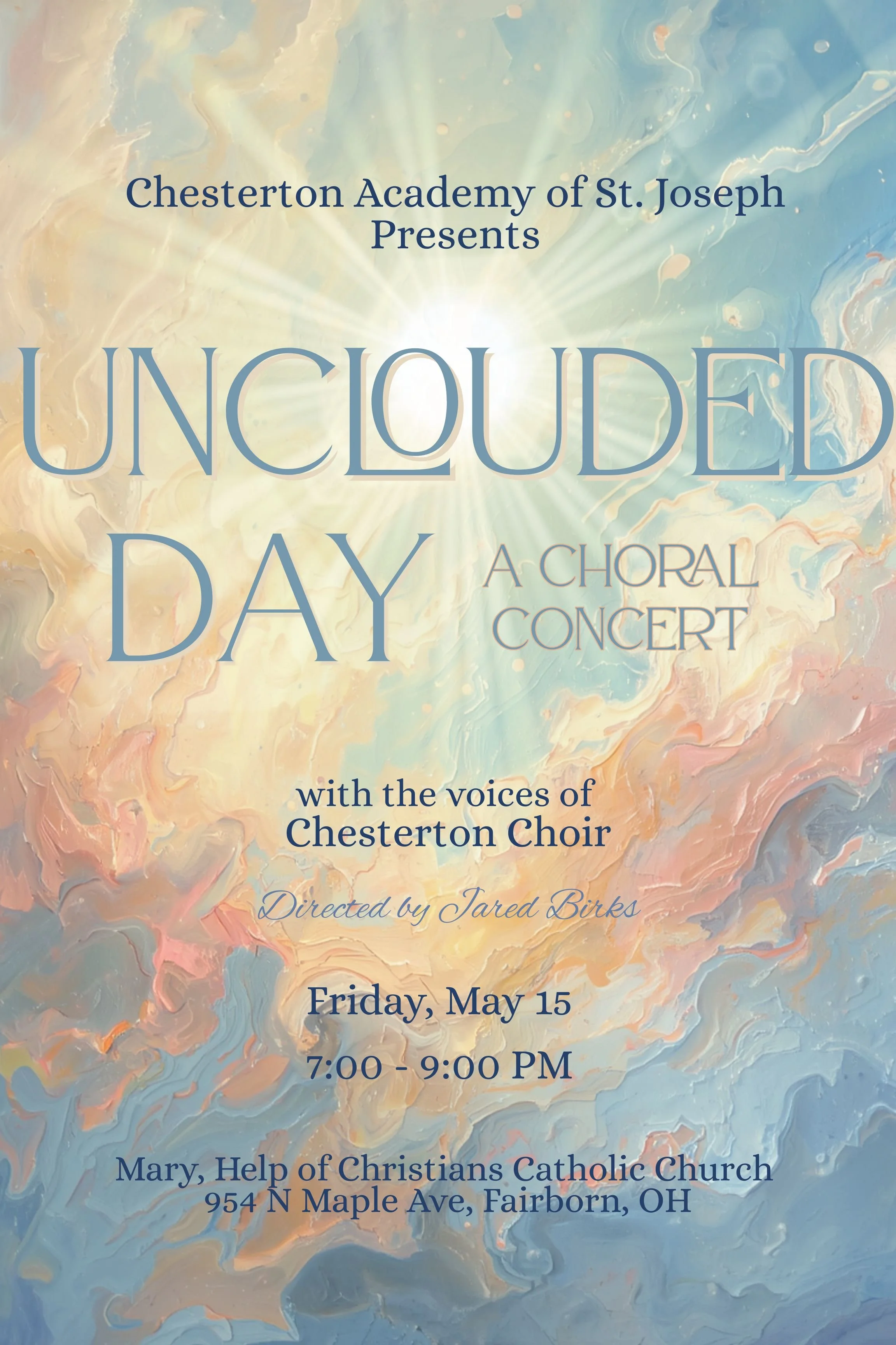 Spring Concert Friday, May 15, 2026 7:00 PM 9:00 PM 19:00 21:00 Chesterton Academy of St Joseph 954 North Maple Avenue Fairborn, OH, 45324 United States (map) Google Calendar ICS